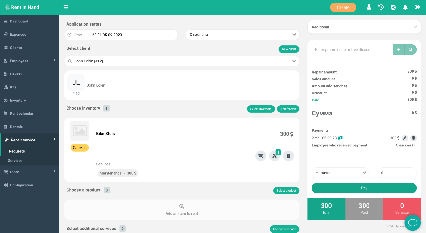 The workshop module fully records the work of the repair company. The time spent on repairs is taken into account, as well as the costs associated with the elimination of breakdowns and much more.